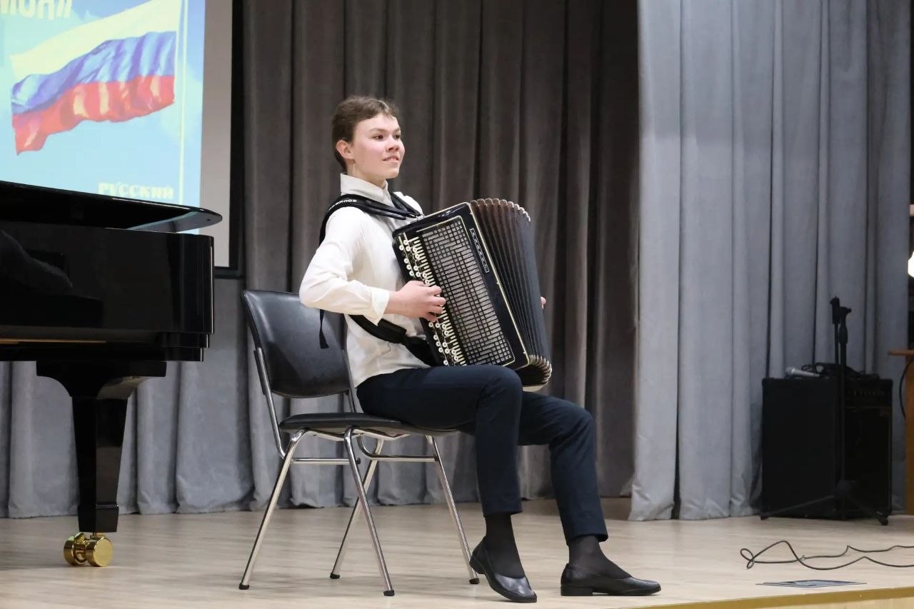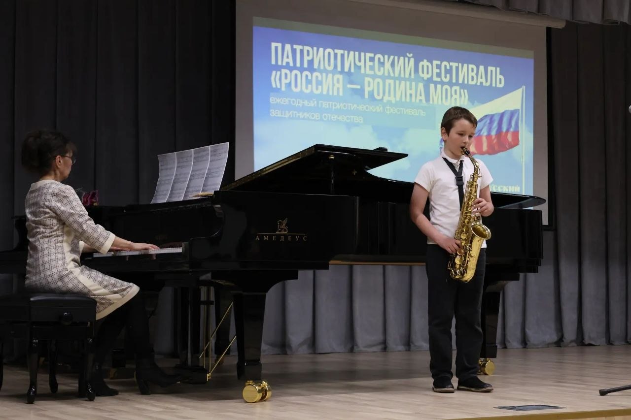 В ответ воспитанники музыкальной школы показали гостям свой небольшой концерт, исполнив композиции на баяне, саксофоне, фортепиано, а также спев хором патриотическую песню.