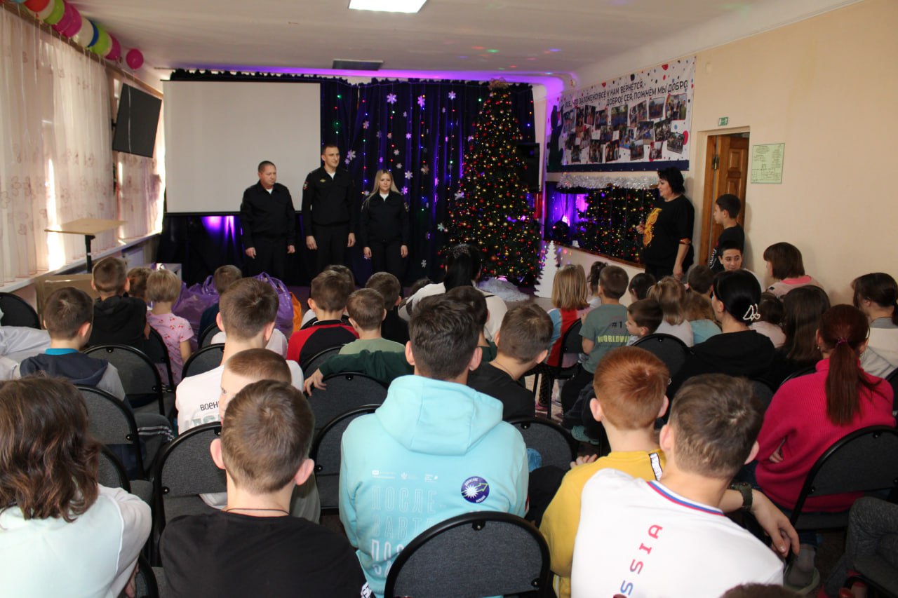 Сотрудники Запорожского линейного отдела МВД России на транспорте провели традиционную предновогоднюю акцию «Полицейский Дед Мороз» для воспитанников Мелитопольского областного центра социально-психологической реабилитации.