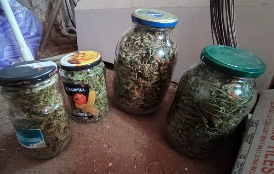 При осмотре домовладения, в одной из комнат жилого дома и в хозяйственной постройке сотрудники полиции обнаружили и изъяли пять банок, а также полимерный пакет, содержащие вещество растительного происхождения с ярко выраженным запахом конопли.