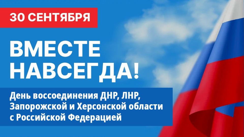 Новая памятная дата России, 30 сентября 2022 года, – День воссоединения Донецкой Народной Республики, Луганской Народной Республики, Запорожской области и Херсонской области с Российской Федерацией, была принята законом Государственной Думы 19...