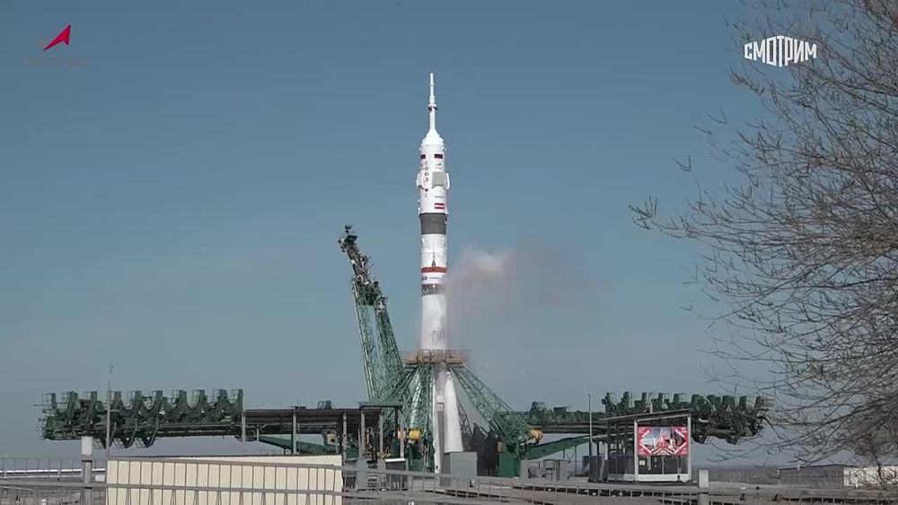 На борту корабля — космонавты Сергей Рыжиков, Алексей Зубрицкий, астронавт NASA Джонатан Ким.