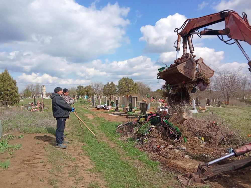Сотрудники МУП «Жилсервис» проводят уборку на кладбище в селе Новониколаевка
