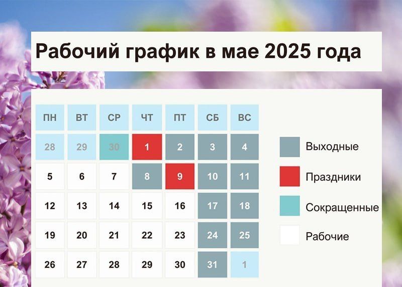 Вторые выходные: 8–11 мая (4 дня, День Победы).