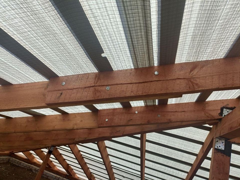На сегодняшний день строители уложили 40% кровельного покрытия из профлиста. Наполовину смонтирована система водостоков. Шефы планируют завершить работы к осени.