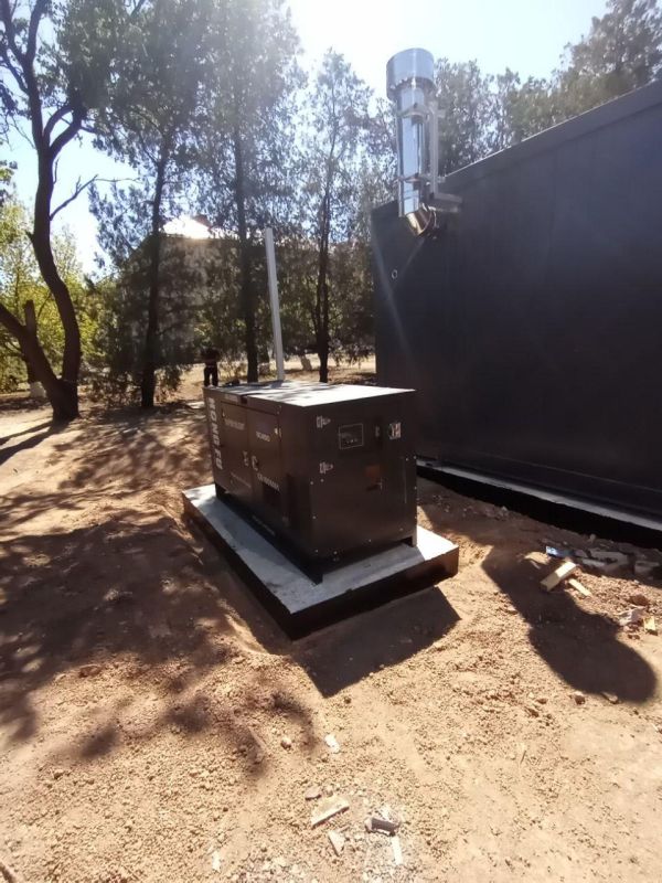 Шефы продолжают работы по монтажу новой котельной. На место привезли и установили на основание новый дизель-генератор, который будет снабжать котельную электричеством.