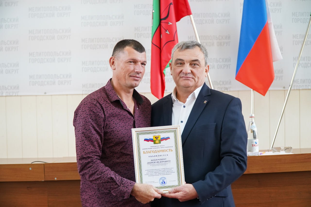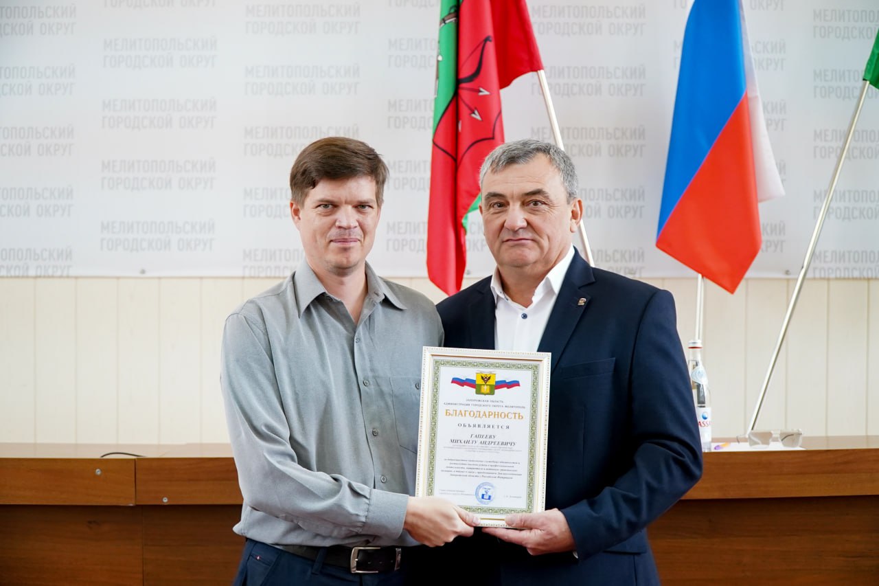 В начале заседания состоялась торжественная церемония награждения, в ходе которой вручил благодарности от имени Губернатора Запорожской области и администрации городского округа Мелитополь сотрудникам администрации и руководителям предприятий. Эти награды - заслуженное признание профессиональных успехов и значительного вклада в развитие нашего городского округа.