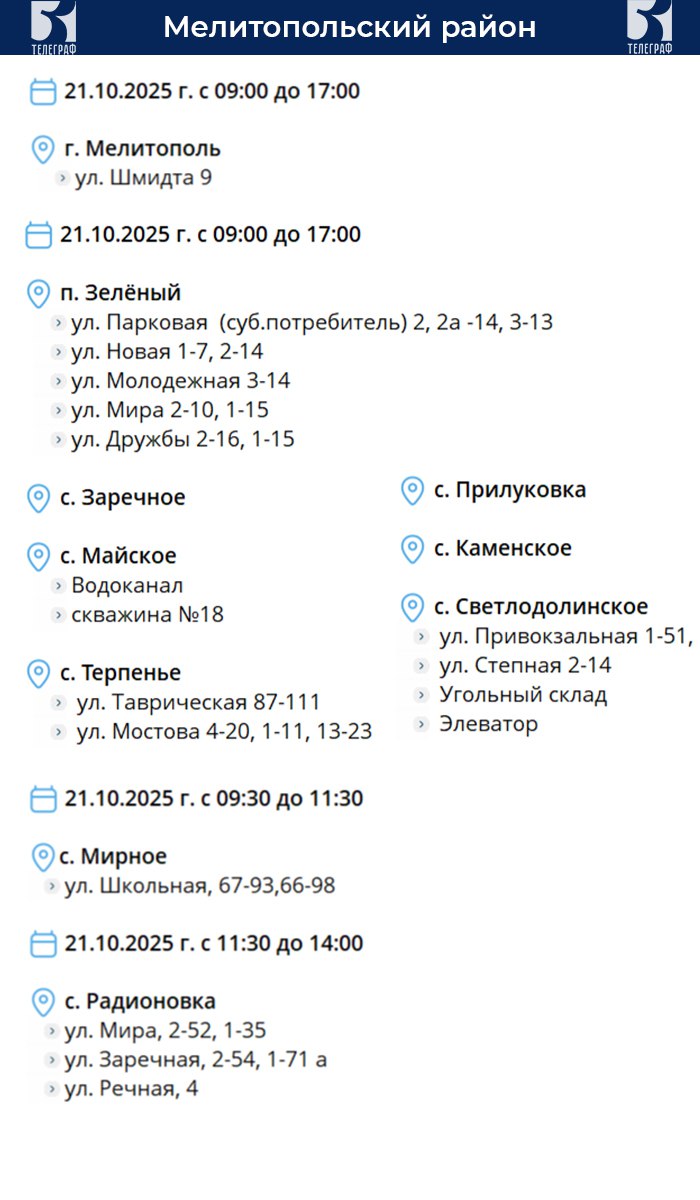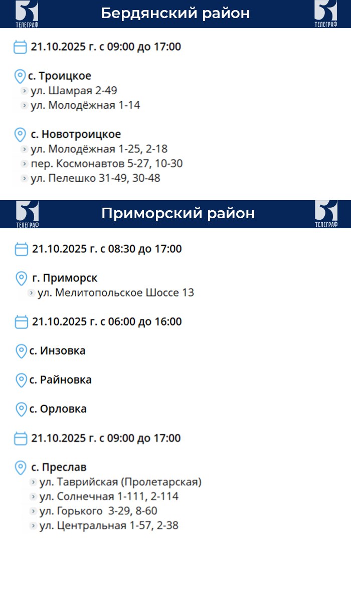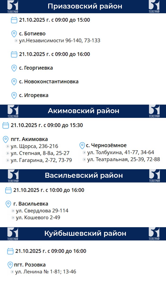 «Запорожьеэнерго» информирует о том, что в связи с проведением плановых работ будет отсутствовать электроэнергия в таких районах: