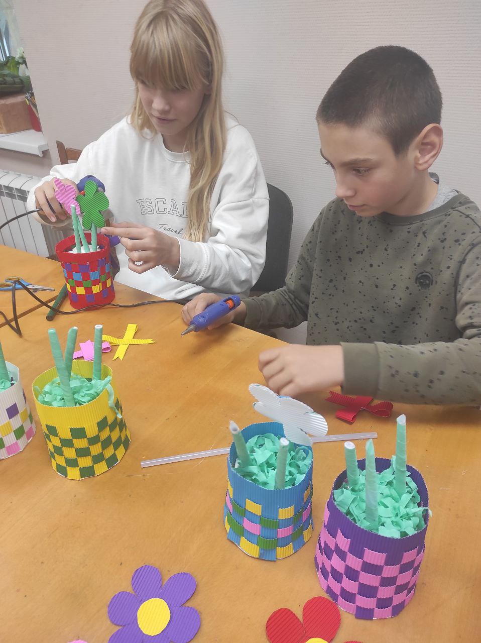Дети с увлечением творили яркие композиции, стараясь сделать свои подарки красивыми и необычными.