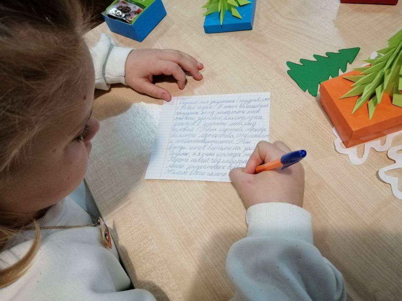 Родители собрали коробочки со сладостями, дети своими руками сделали ёлочки и написали искренние письма с поздравлениями.