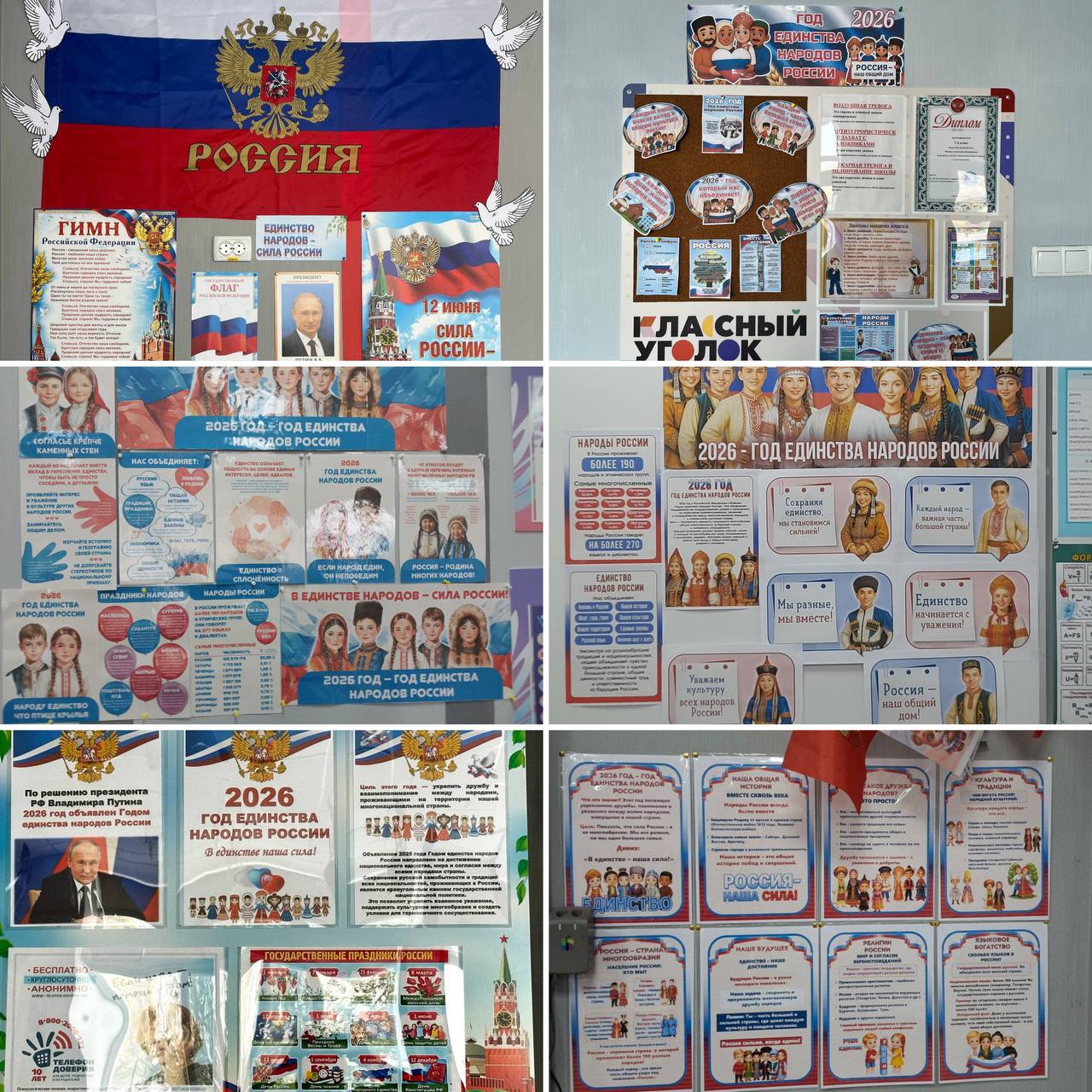 Также совместно с учениками были оформлены классные уголки, посвящённые Году единства народов России, где отражены символы дружбы и многообразия народов страны. Такие инициативы способствуют формированию патриотизма и уважения к культурному наследию России среди школьников.