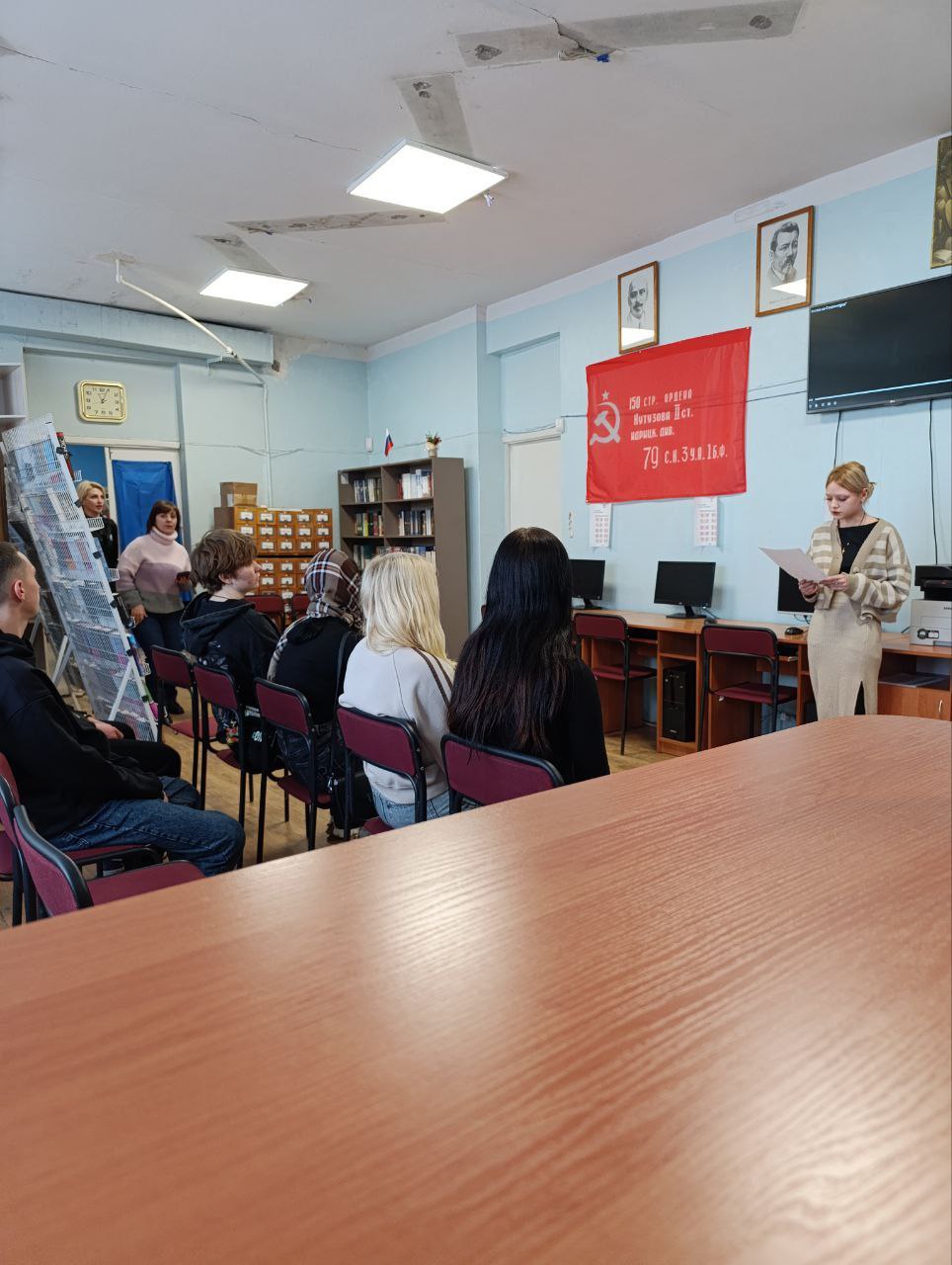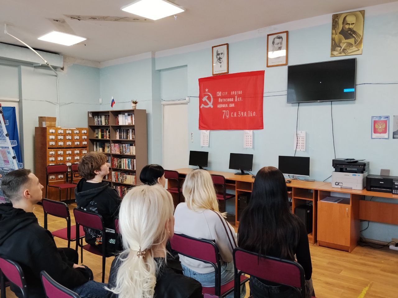 В библиотеке им. В. Маяковского прошел видеопоказ для студентов. Посмотрели хронику и кадры из фильмов о великом сражении.