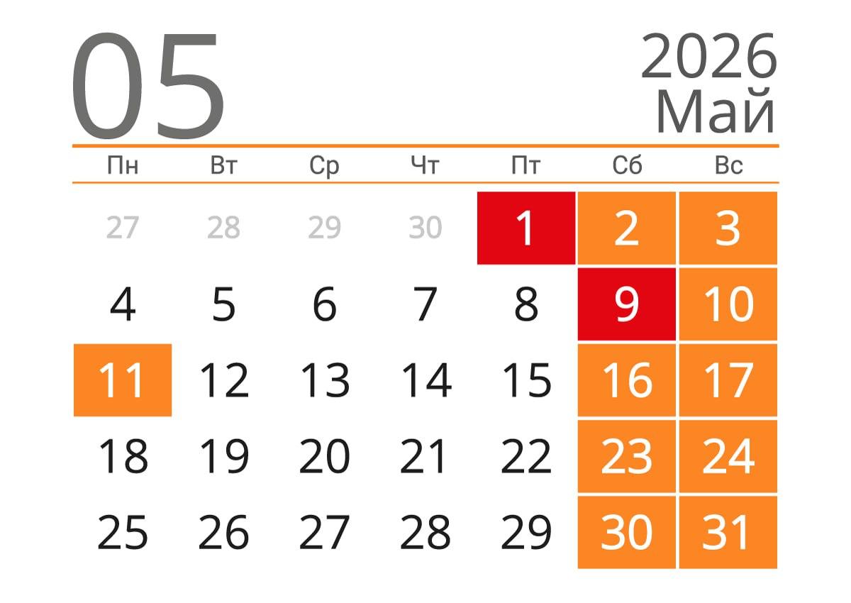 Ближайшие трёхдневные выходные— 1–3 мая. Затем будут 9–11 мая и 12–14 июня.Рабочие дни перед праздниками (30 апреля, 8 мая и 11 июня) сократят на один час.