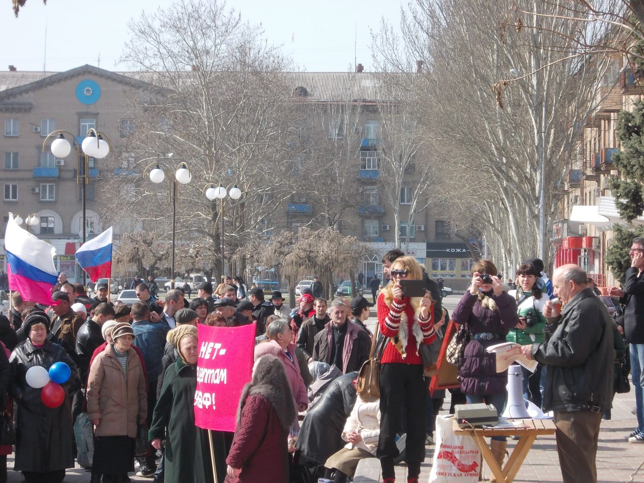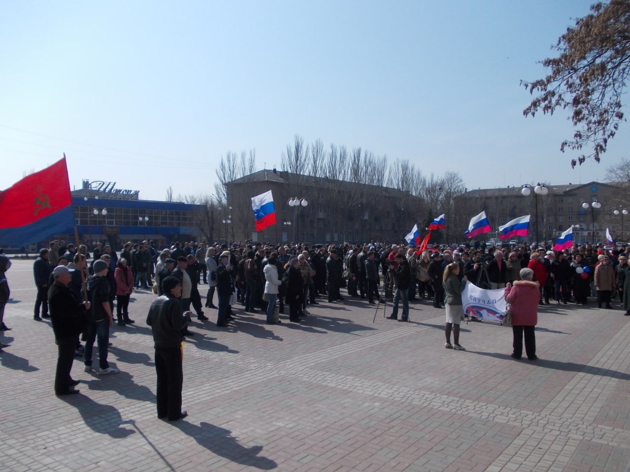 Накануне референдума, 15 марта, в Мелитополе на площади Победы прошёл митинг сторонников движения «Русская весна». Люди вышли поддержать жителей Крыма — с надеждой, что однажды и их голос будет услышан.