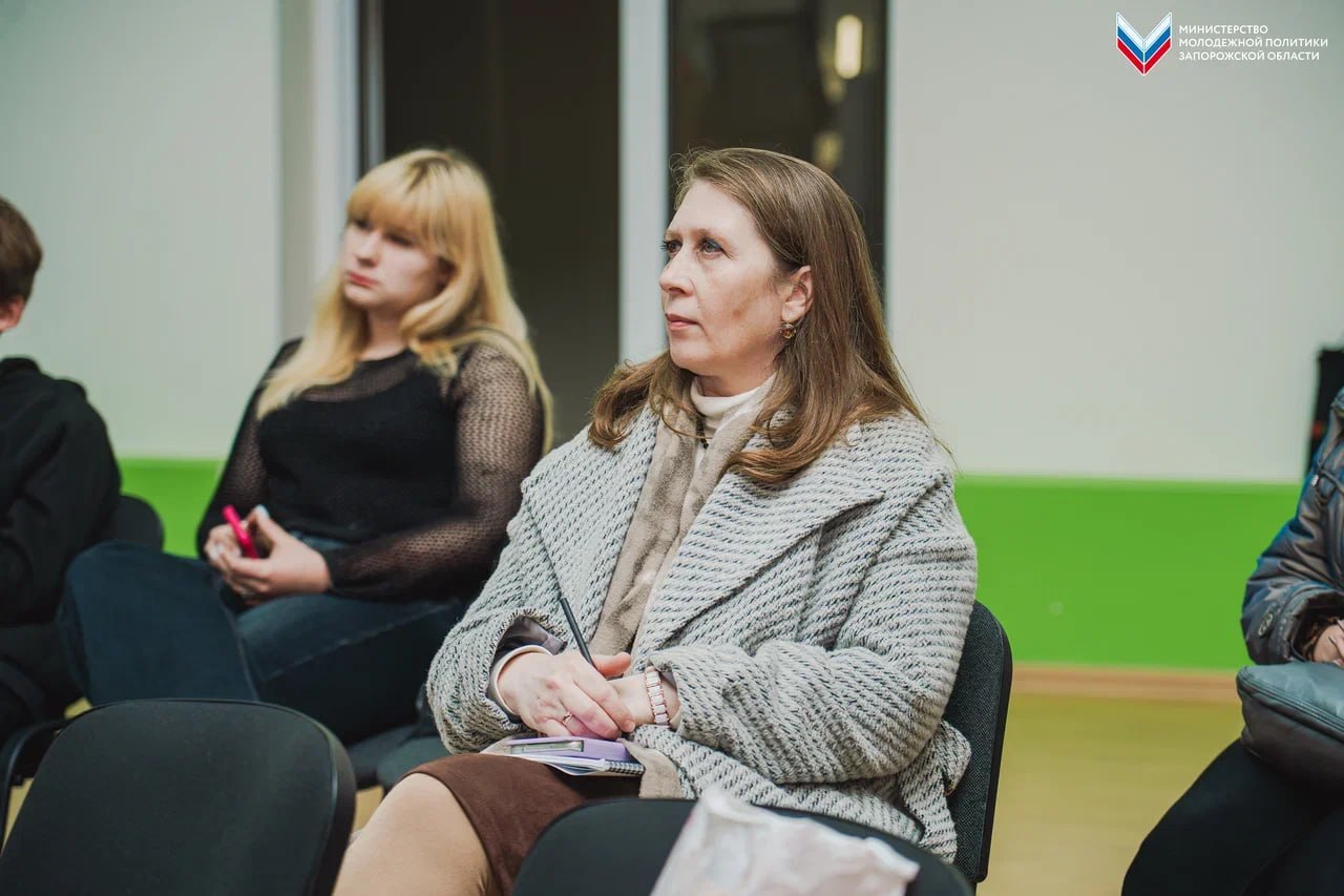 На площадке Мелитопольского молодёжного центра собрались специалисты по работе с молодёжью, педагоги, советники по воспитанию и представители общественных организаций. Вместе с федеральными экспертами разбирались, как готовиться к 9 Мая и другим значимым датам – не формально, а с реальным откликом у молодёжи.