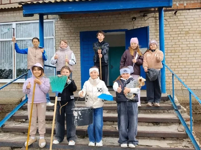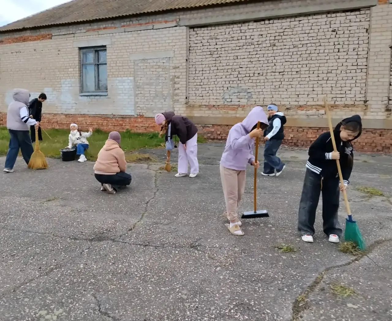 Ребята с энтузиазмом взялись за дело: собрали мусор, привели в порядок газоны и дорожки возле клуба.