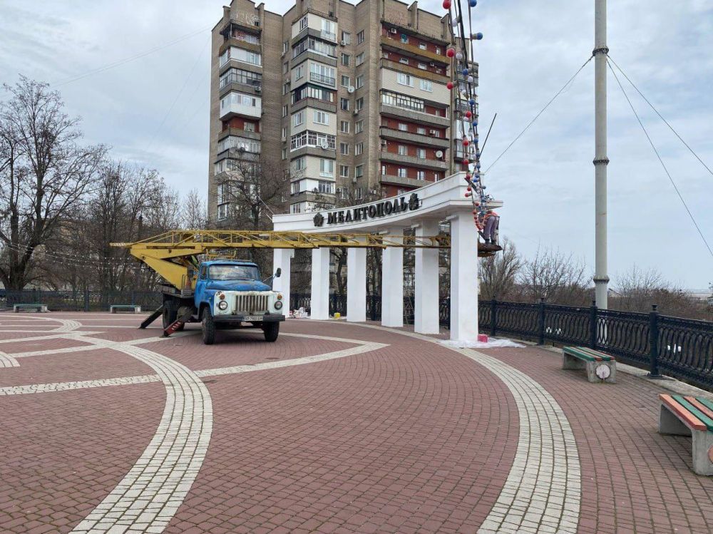 На площади Победы в Мелитополе ведутся работы по реставрации ротонды и плановая обрезка деревьев