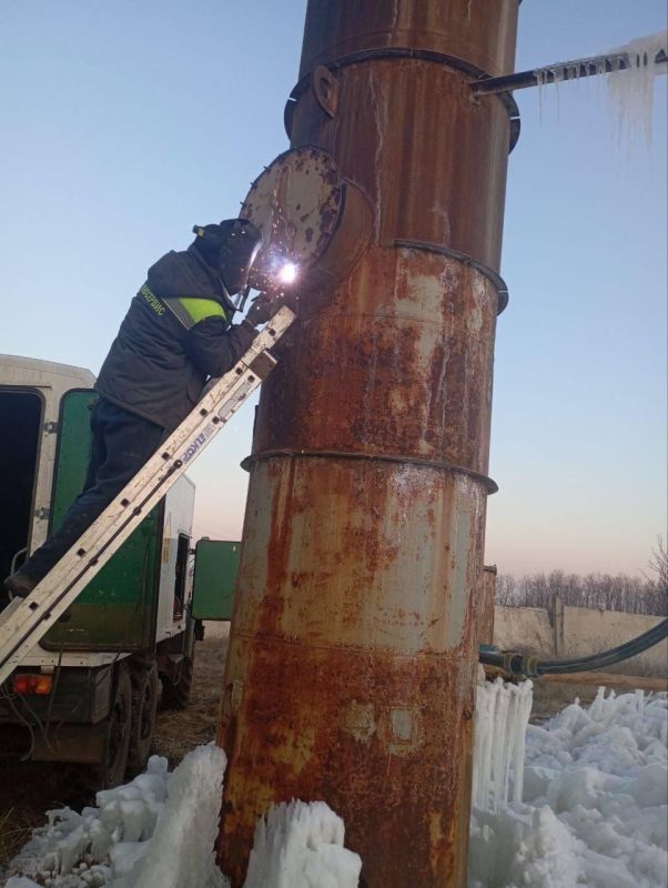Специалисты аварийной бригады устранили протечку в резервуаре чистой воды в селе Троицкое.