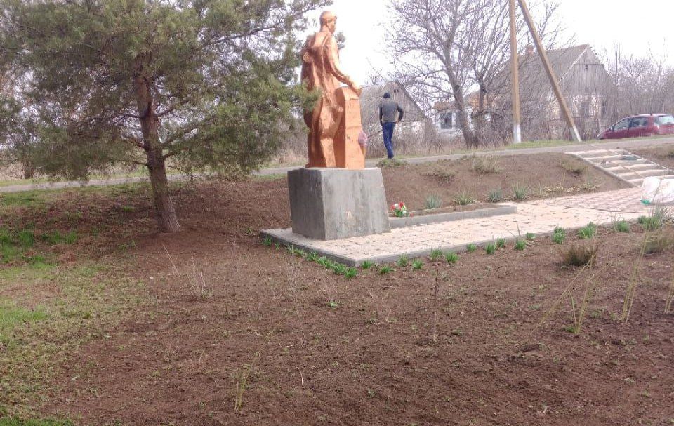 Сотрудники МУП «Жилсервис» Астраханского ТО провели уборку территории у памятника ВОВ в селе Еленовка