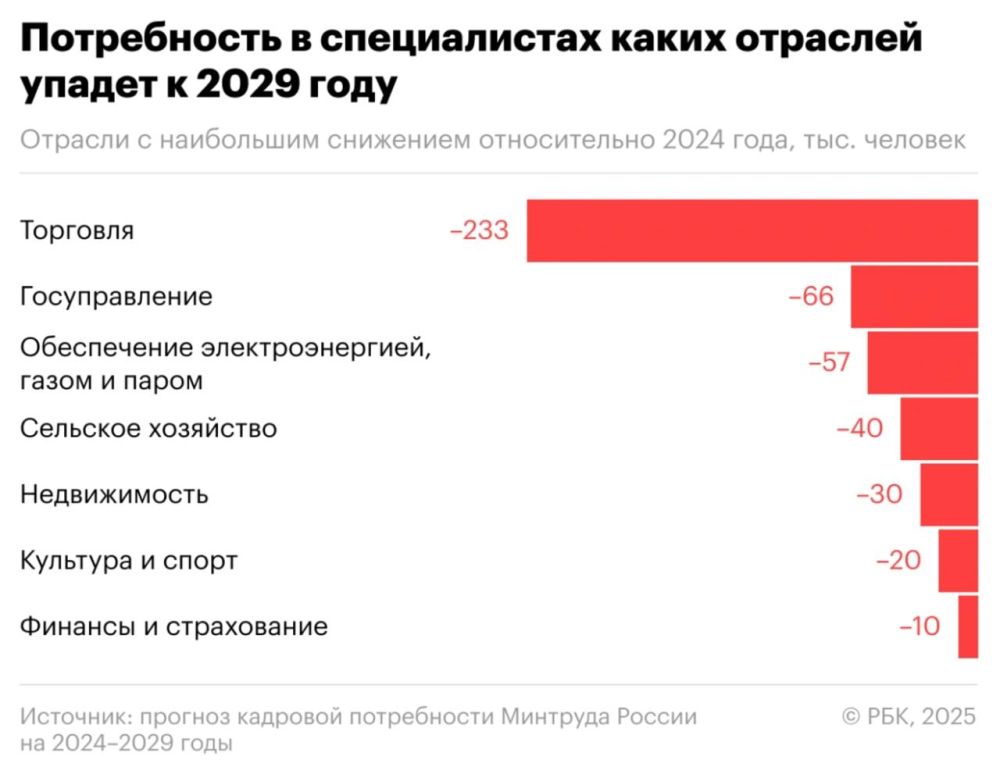 Сильней всего упадет спрос на работников торговли, госуправления, обеспечения электроэнергией, сельского хозяйства, недвижимости, культуры и спорта, а также финансов и страхования.