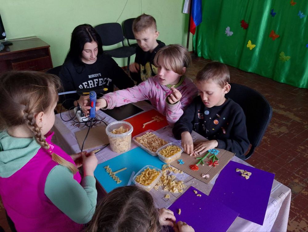 В Клубе досуга п. Заречное прошёл мастер-класс по созданию картин из макарон.