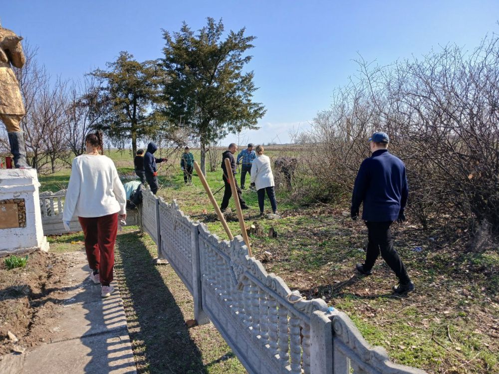 Жители села, сотрудники администрации Зареченского территориального отдела и МВД города Мелитополя Запорожской области вместе навели порядок вокруг памятника и внутри него.