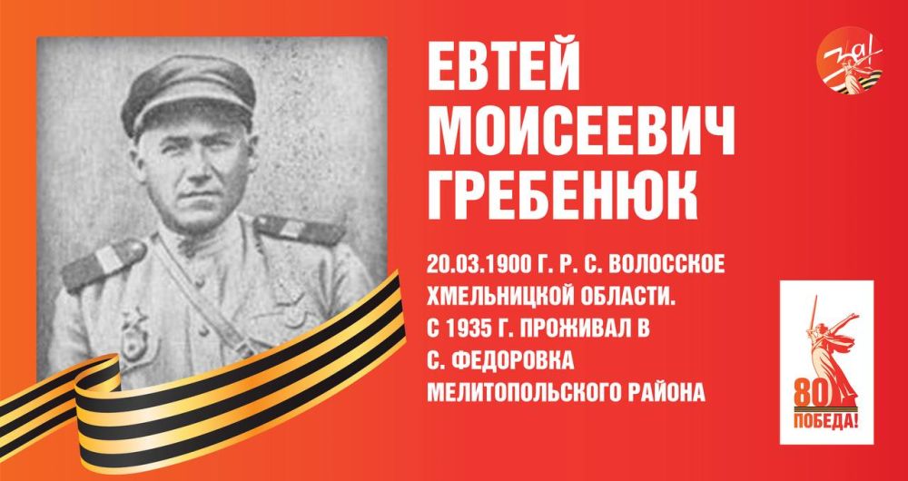 Евтей Моисеевич Гребенюк — гвардии старший сержант, помощник командира взвода 4-й роты, 2-го стрелкового батальона, 85-го гвардейского стрелкового полка, 32-й гвардейской стрелковой дивизии, 2-й гвардейской армии, 1-го Прибалтийского фронта.