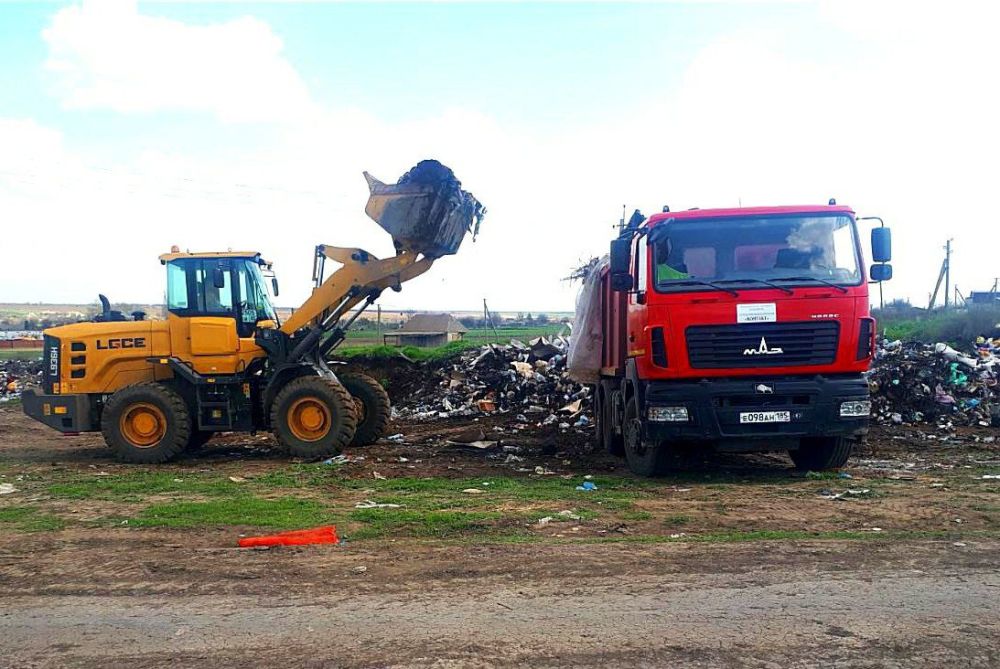 Сотрудники МУП КП «Контакт» вывозят бытовые отходы с несанкционированной свалки в селе Новониколаевка.