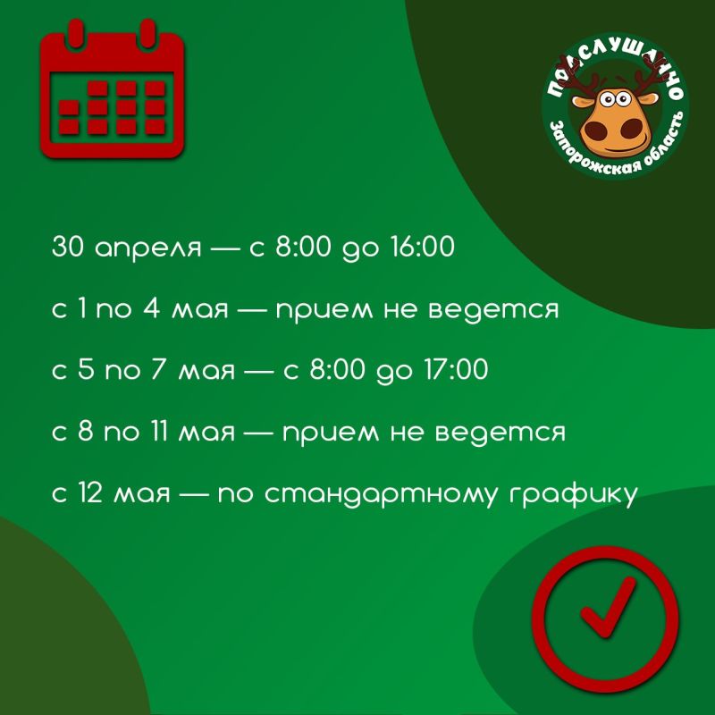 График работы клиентских служб ОСФР по Запорожской области в майские праздники