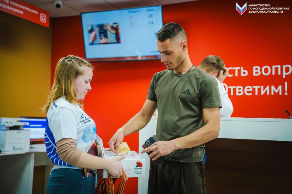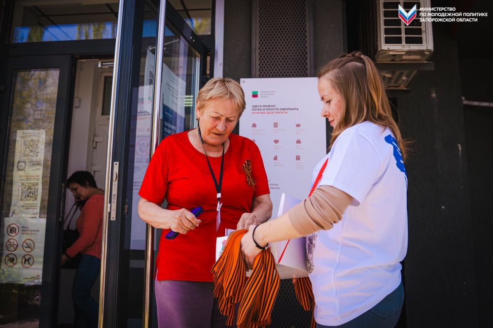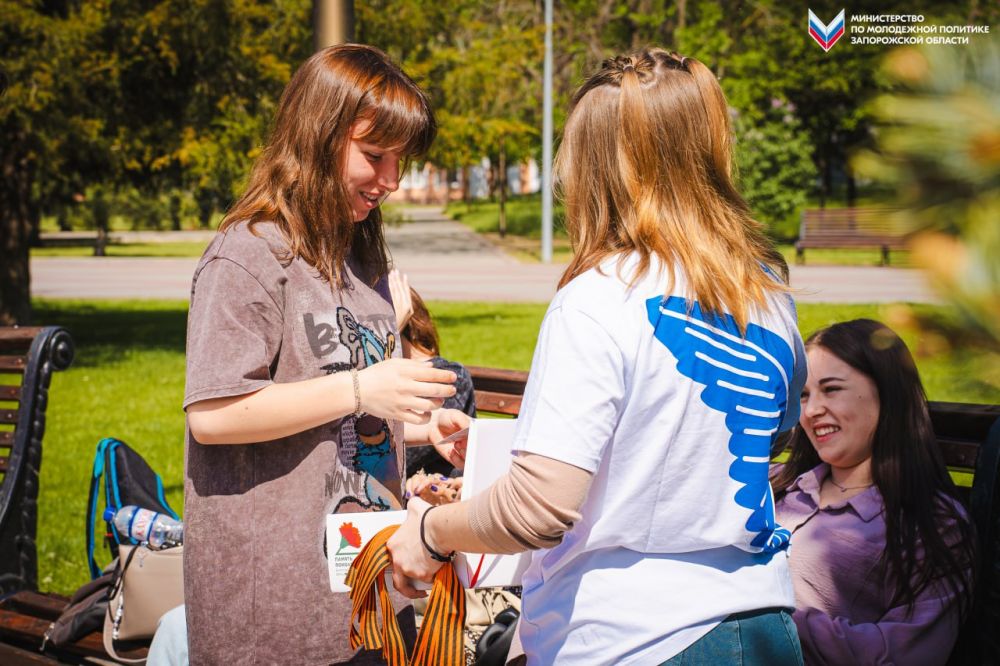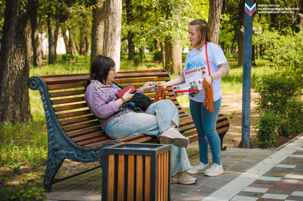 Активисты в парке имени Горького в Мелитополе, а также в Многофункциональном центре предоставления государственных и муниципальных услуг Запорожской области раздавали Георгиевские ленты, объясняя их значение и рассказывая об истории ленты, а также предлагали всем желающим принять участие в благотворительной акции «Красная гвоздика».