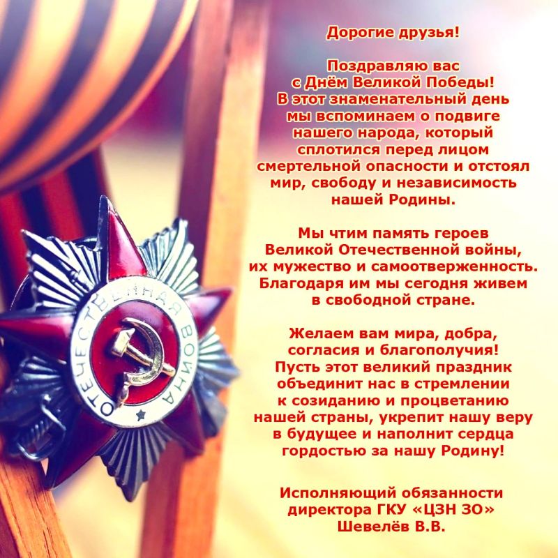 Поздравление с 80-летием Великой победы исполняющего обязанности директора Государственного казённого учреждения «Центр занятости населения Запорожской области» Шевелёва Виталия Викторовича