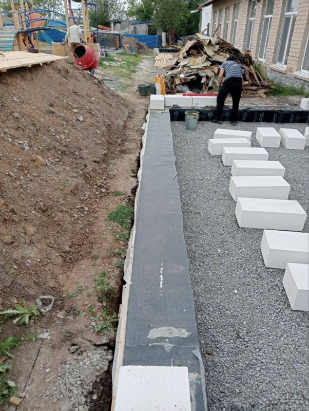 В детском саду «Солнышко» активно ведётся восстановление пристройки. На сегодняшний день завершены демонтаж старой конструкции и обустройство нового фундамента.