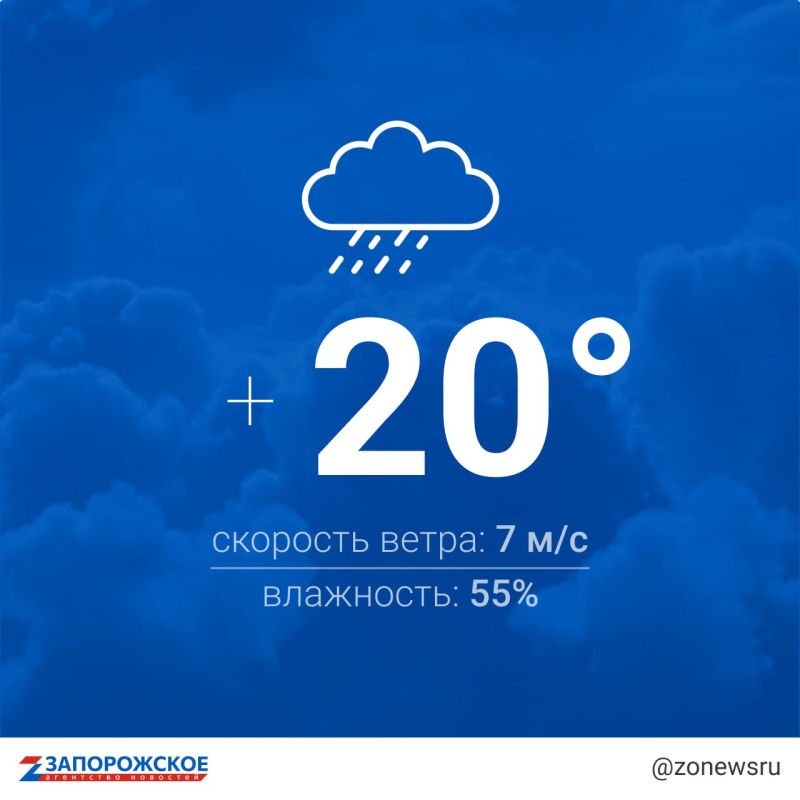 Энергодар — +20 °С, облачно с прояснениями, небольшой дождь