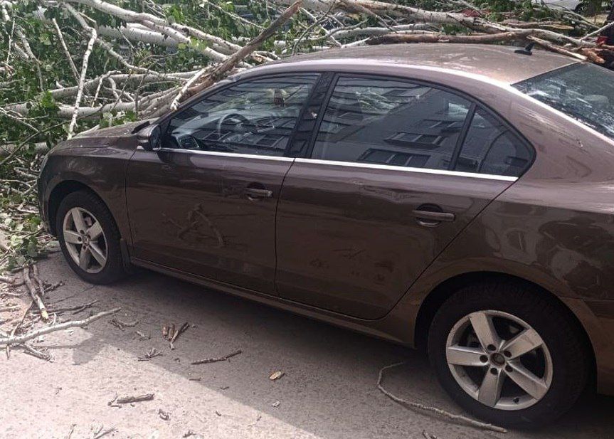 В Энергодаре также упало дерево во дворе дома. Повреждены оказались шесть автомобилей. Спасатели на месте распиливают упавшие деревья и ветки.