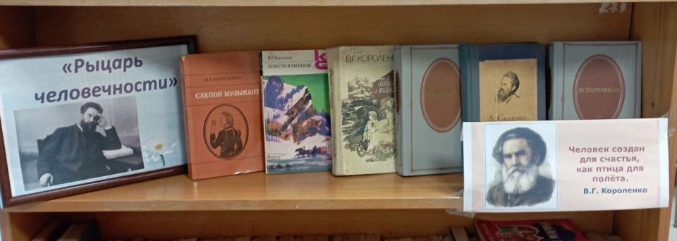 В библиотеке им. М. Горького к дню рождения Короленко В.Г. подготовлена книжная полочка «Рыцарь человечности» - это книги, охватывающие всё многообразие произведений писателя.