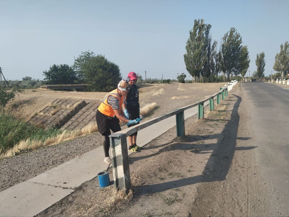 Сотрудники МУП «Жилсервис» провели покраску столбов и перил моста который соединяет села Кирпичное и Фруктовое.