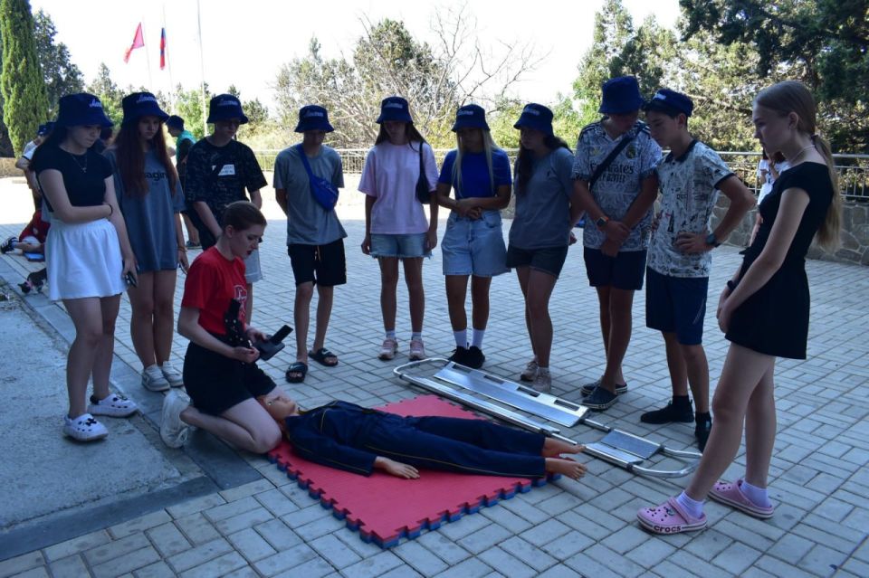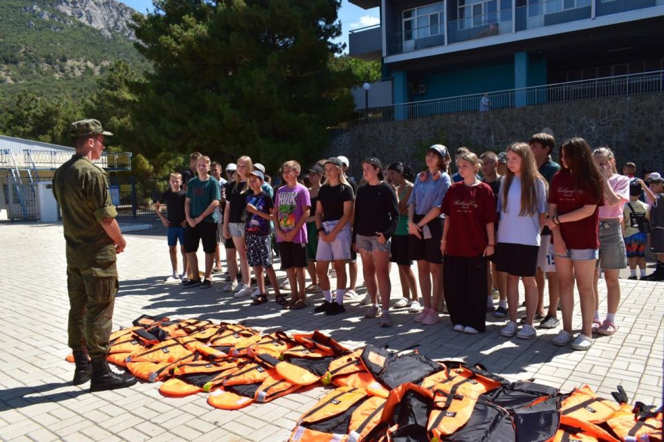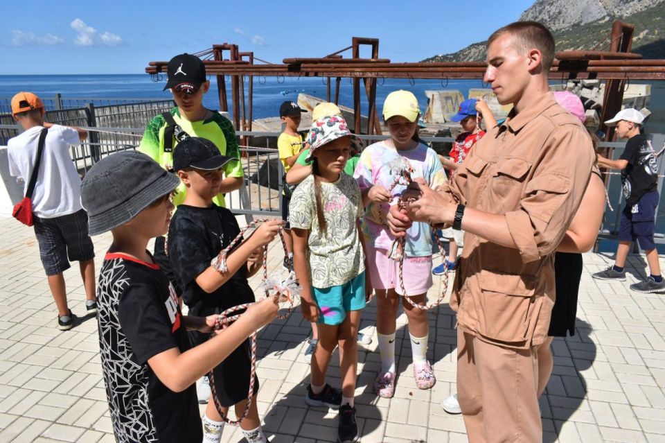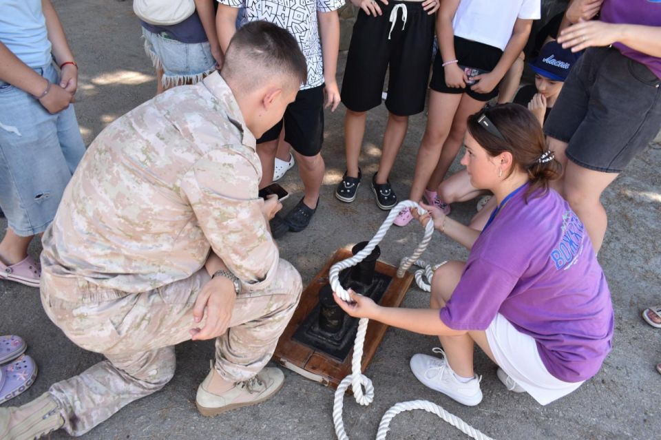 В лагере «Ласпи» представители движения «Юнармия» организовали для детей мастер-классы по оказанию первой помощи, основам самообороны, знакомили с устройством плавсредств и обучали правилам безопасного поведения на воде.