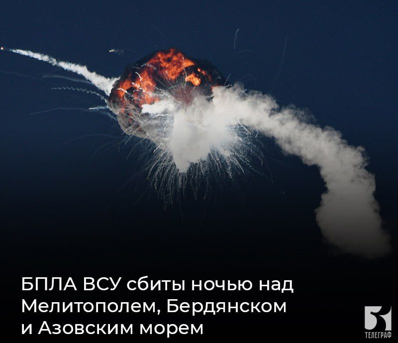 Ночью сообщалось о сбитии БПЛА противника над Бердянском и Мелитополем. В Минобороны также рассказали об уничтожении вражеского дрона над акваторией Азовского моря.