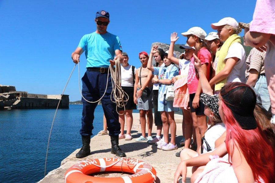 В четвёртую смену в севастопольский детский лагерь «Ласпи» прибыли 50 ребят из Мелитопольского муниципального округа. Для них сотрудники Спасательной службы Севастополя организовали обучающее занятие, посвящённое правилам поведения на воде и оказанию первой помощи.