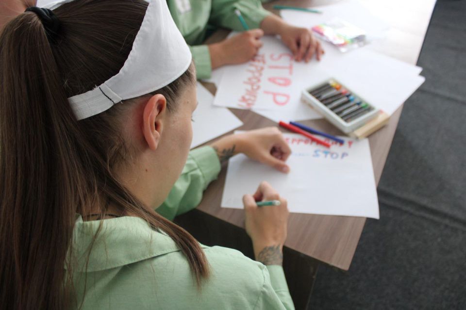 Так же осуждённые приняли участие в акции «Рисунок Мира», в рамках которой всем желающим представилась возможность изобразили небольшие схематические плакаты на тему антитеррора. Все рисунки будут использоваться в дальнейших тематических мероприятиях.