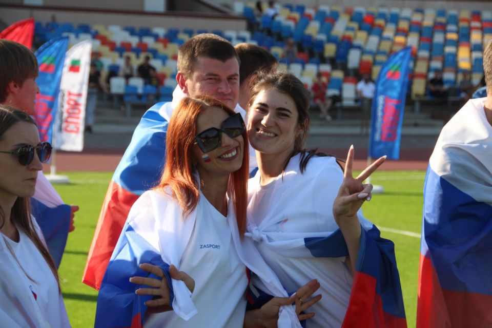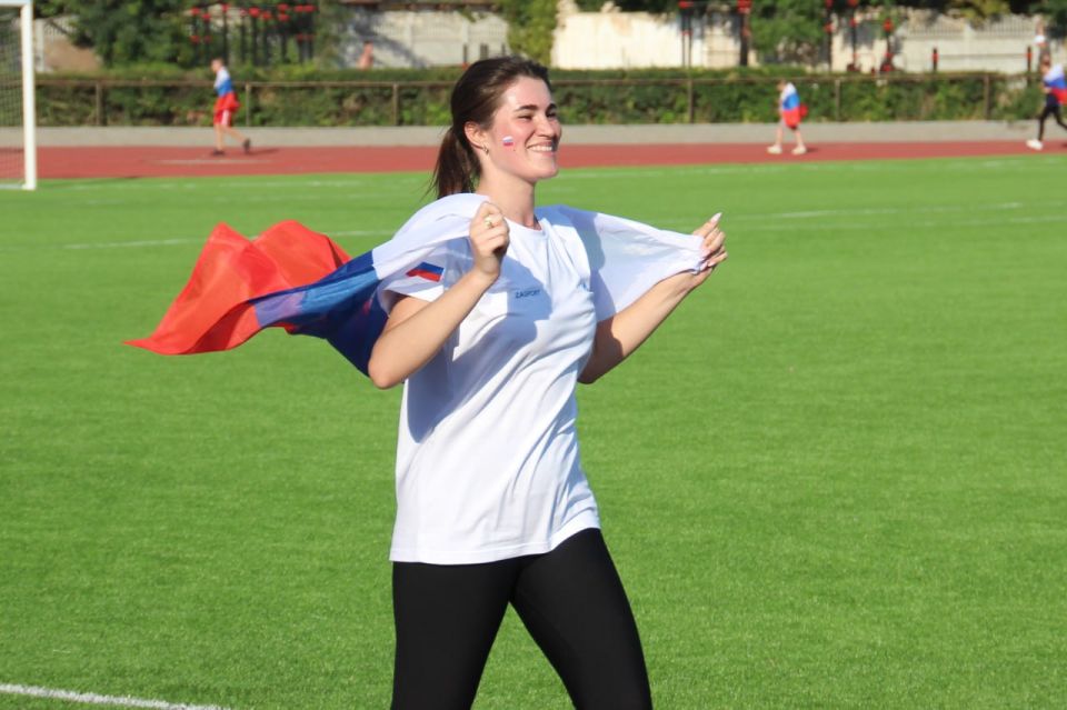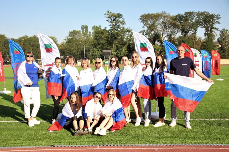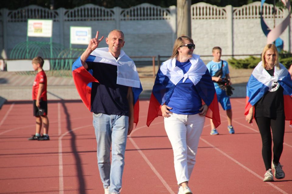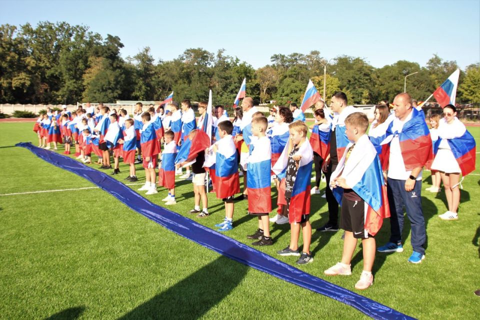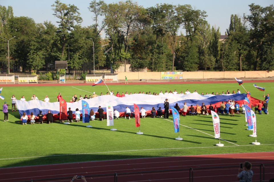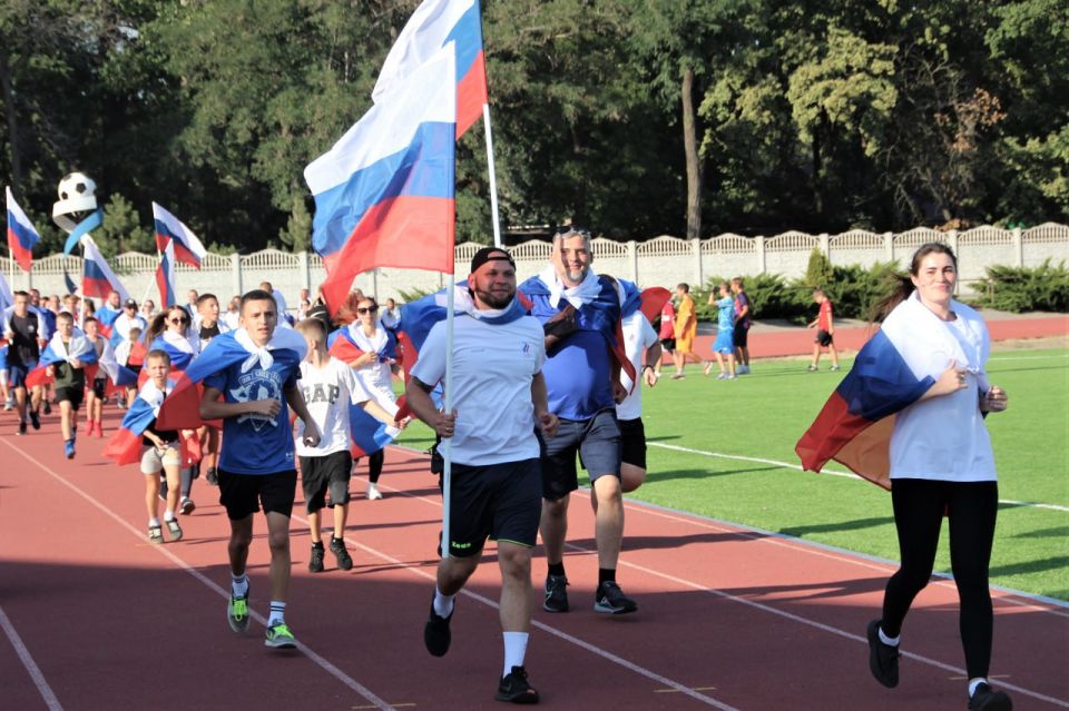 Патриотический забег ко Дню флага России состоялся на стадионе «Спартак» в Мелитополе. Участники развернули 16-метровый флаг Российской Федерации.