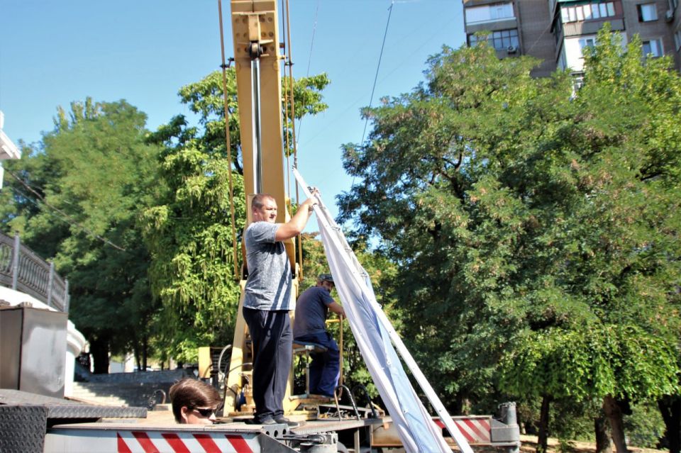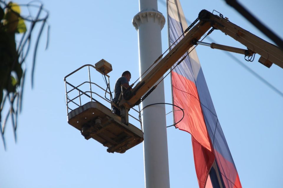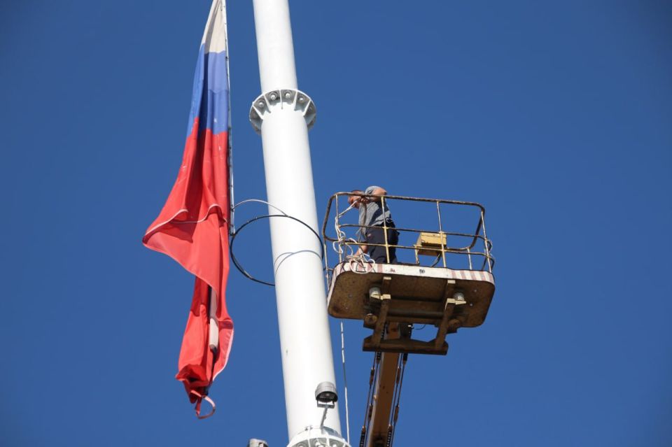 Триколор обновили на главной площади Мелитополя в честь Дня флага