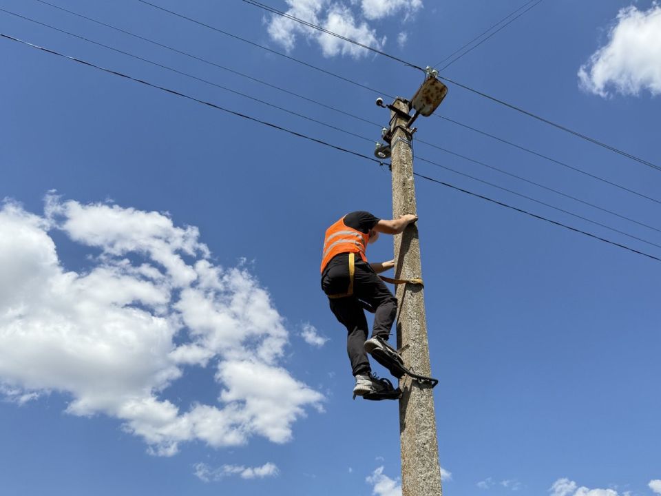 На улице Молодёжной в селе Астраханка сотрудниками МБУ «Жилсервис» была проведена замена элементов поддерживающего натяжителя в системе уличного освещения.