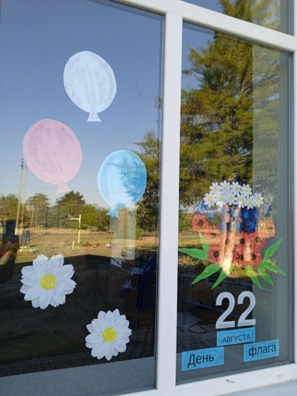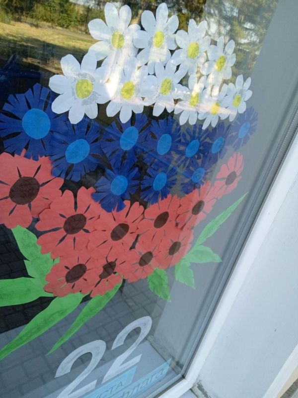 Жители украсили окна символикой триколора, выражая уважение к главному государственному символу и любовь к Родине.