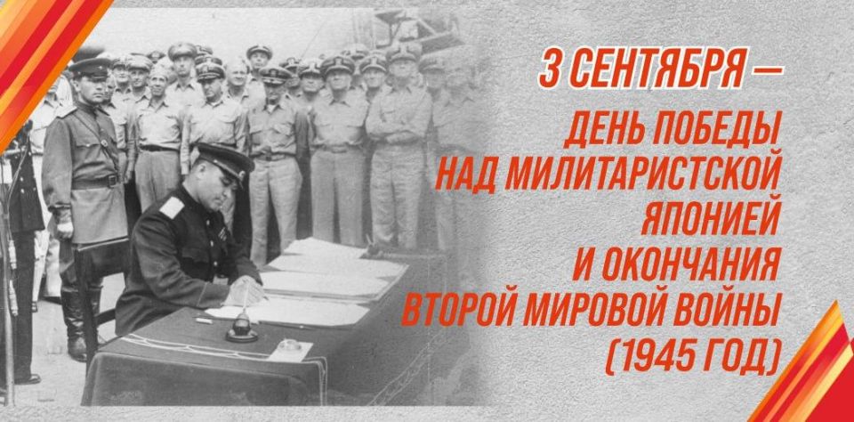 Сегодня мы отмечаем важнейшую дату — 2 сентября 1945 года. В этот день на борту американского линкора «Миссури» был подписан акт о капитуляции Японии. Так завершилась Вторая мировая война — самая страшная трагедия ХХ века.