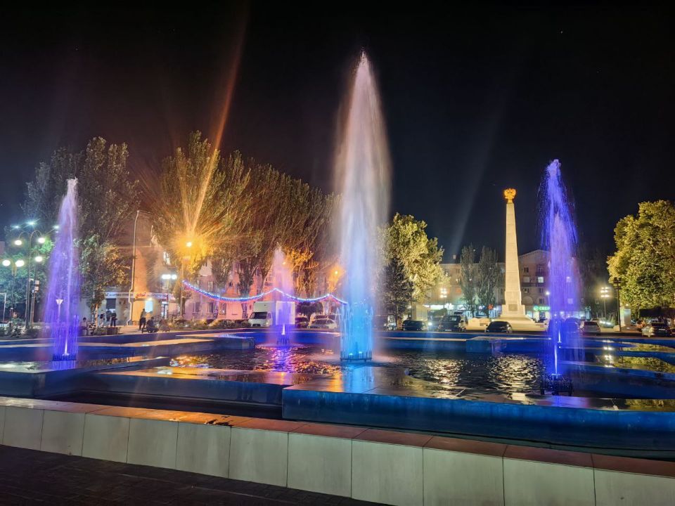 Теперь с наступлением вечера струи воды переливаются всеми цветами радуги.