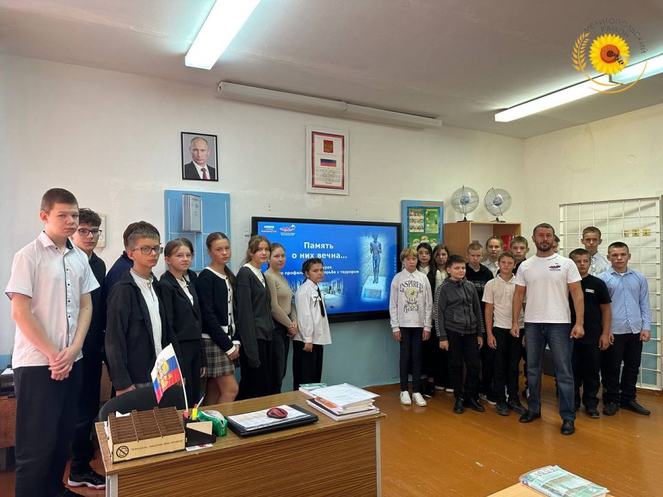 При поддержке амбассадора Президентской платформы " Россия - страна возможностей" Максима Голованова в образовательных учреждениях Мелитопольского муниципального округа прошёл цикл патриотических уроков, посвящённых теме борьбы с терроризмом. Особое внимание было уделено одной из самых трагических страниц в истории современной России — террористической атаке в школе № 1 города Беслан в сентябре 2004 года.