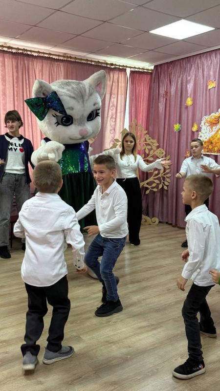 Особенное удовольствие доставила веселая развлекательная программа с участием яркой ростовой куклы, конкурсов и танцевальных игр. Эмоциональный заряд праздника позволил ребятам почувствовать атмосферу праздника и радость объединения разных уголков великой Родины. Также ребятам вручили сладости и свежие фрукты