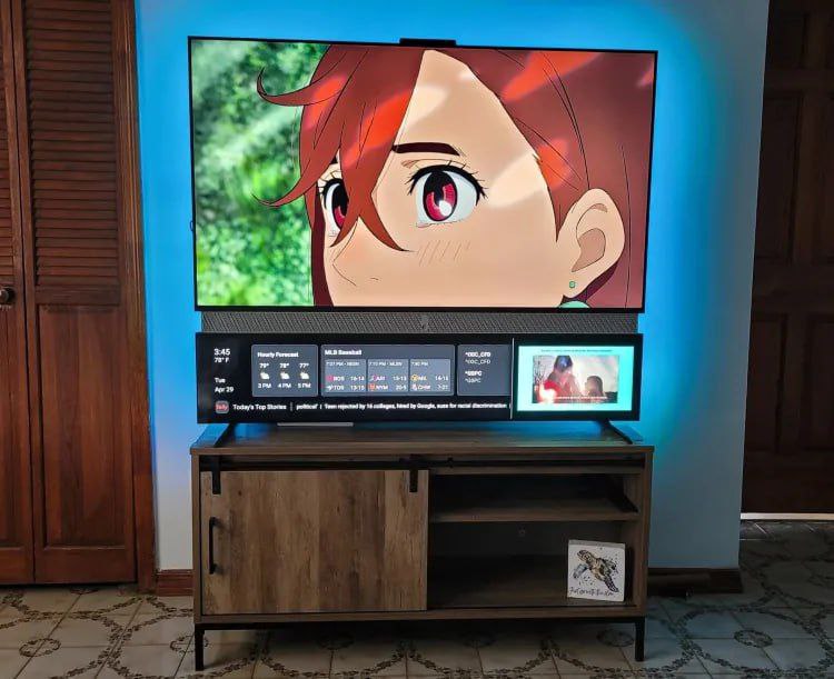 — Основной экран 55” 4К HDR, снизу второй 10” только для рекламы.