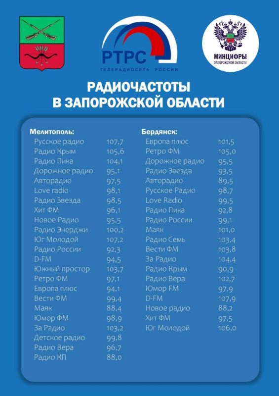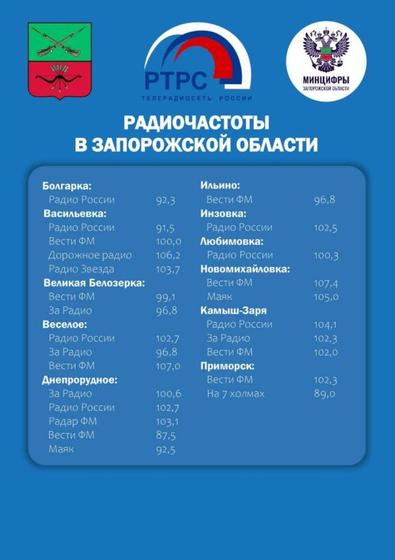 Собрали для вас актуальную информацию с частотами цифрового ТВ и популярных радиостанций в Запорожской области.