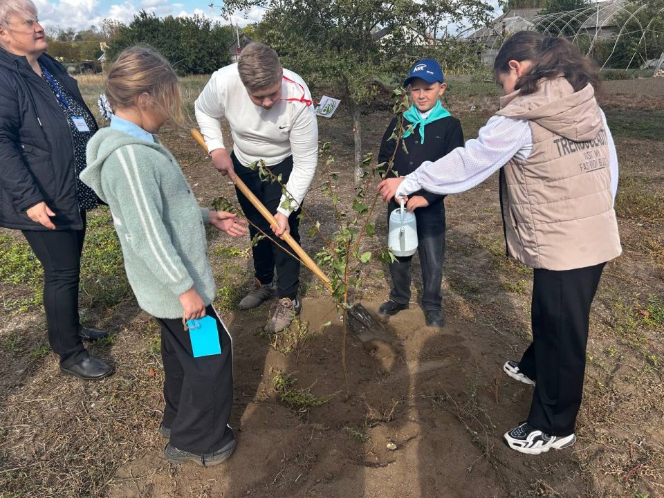 В селе Вознесенка высадили деревья ко Дню учителя